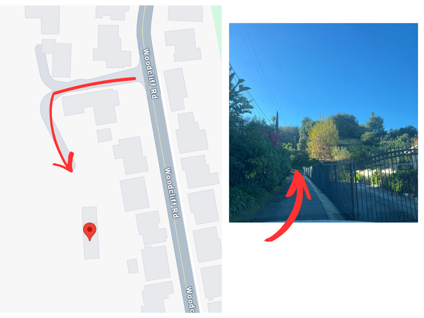 The home sits at the end of a cul-de-sac and is not visible from the street. The entrance to the driveway is next to the gate at 3801 Woodcliff Rd (preferred drop-off location for Uber).